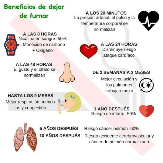 - A las 2 semanas mejora la circulación y desaparece la dependencia física al tabaco